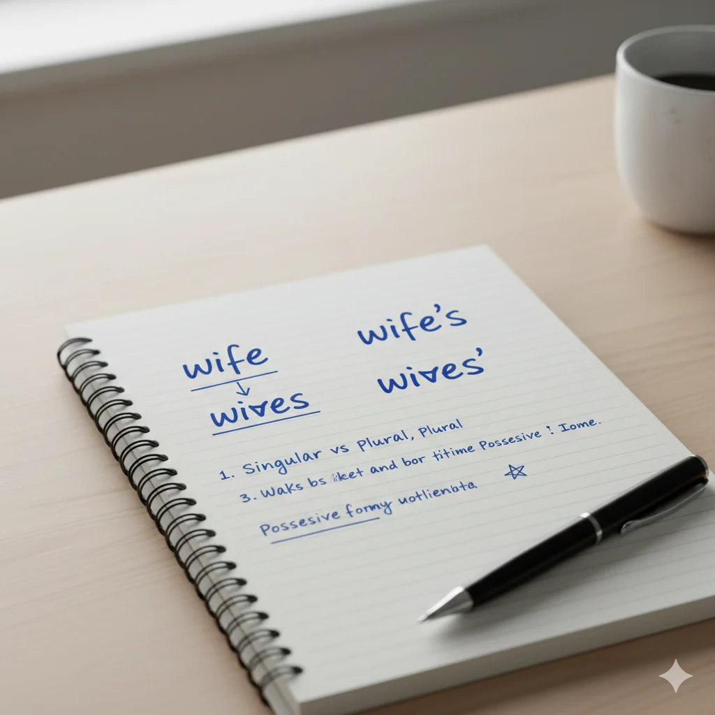 The possessive form follows a different rule. To show something belongs to one person or thing, English adds βs. So, wife becomes wife’s. This is why wife’s vs wives grammar confuses learners. One form shows number. The other shows ownership.